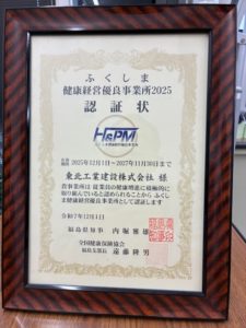 新着情報 「ふくしま健康経営優良事業所2025」に認定されました。 2025.12.24 弊社は、この度福島県より「ふくしま健康経営優良事業所2025」に認定されました。 今後も、社員の健康増進と維持に取り組んでまいりますので、引き続きご支援賜りますようお願い申し上げます。 産学官連携施設建築工事 進捗状況報告 年末年始休暇のお知らせ